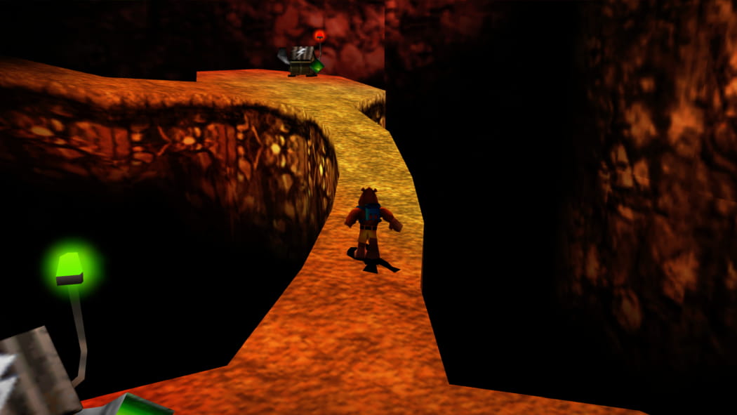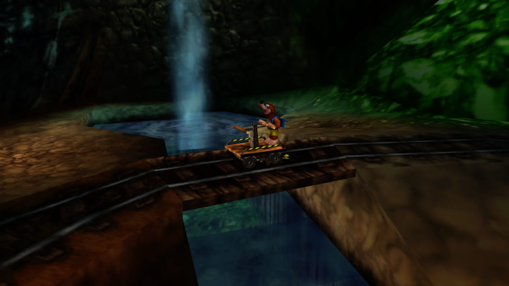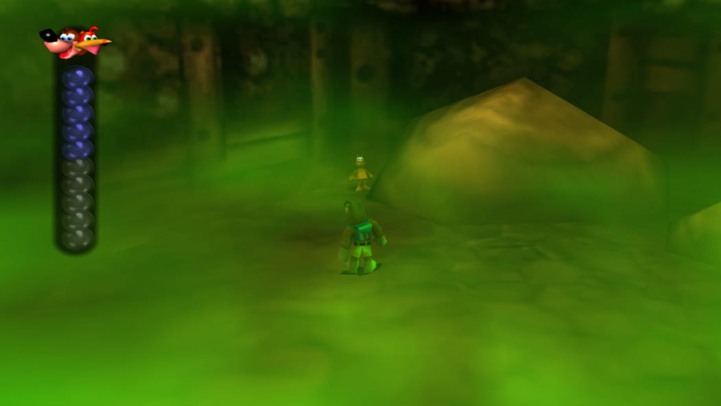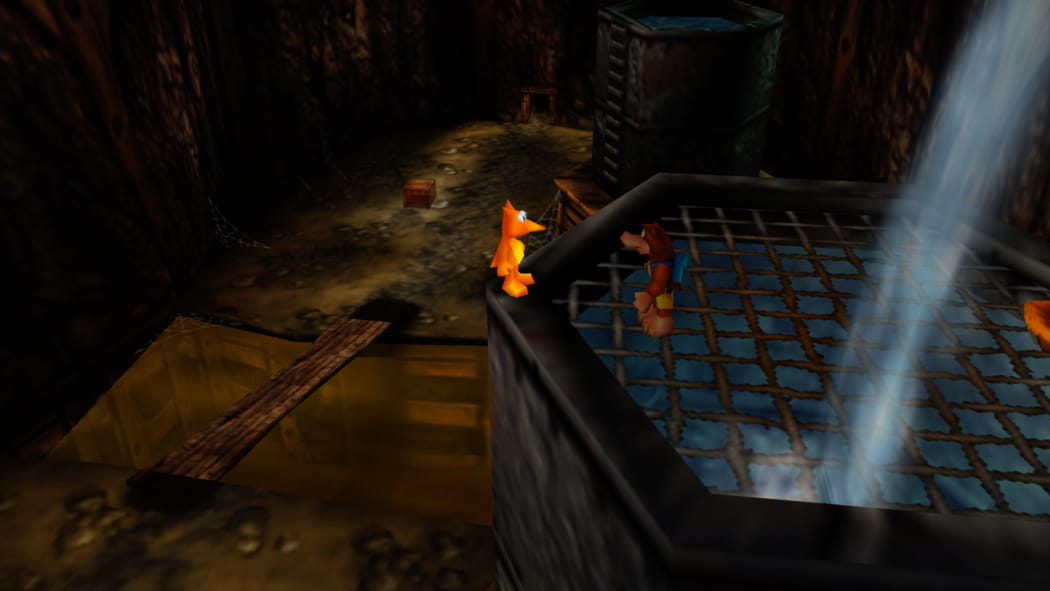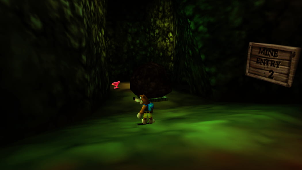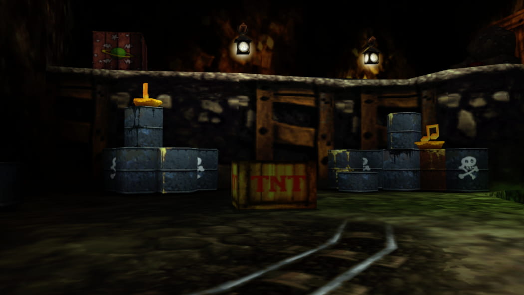 Legt den 2. Mineneingang bei Mumbos Schädel als Banjo und Kazooie und der Bohr-Birne frei. Betretet dann als Detonator die Höhle und zündet das explosive Fass an, sodass ein Weg zum Jinjo frei wird.
