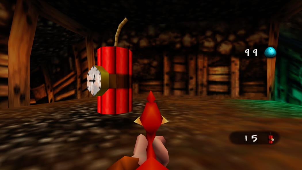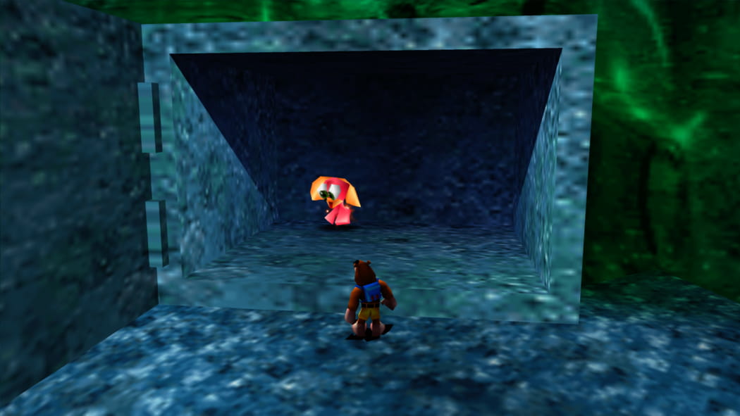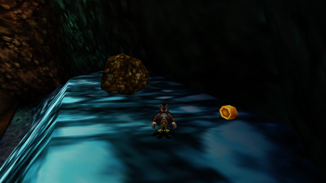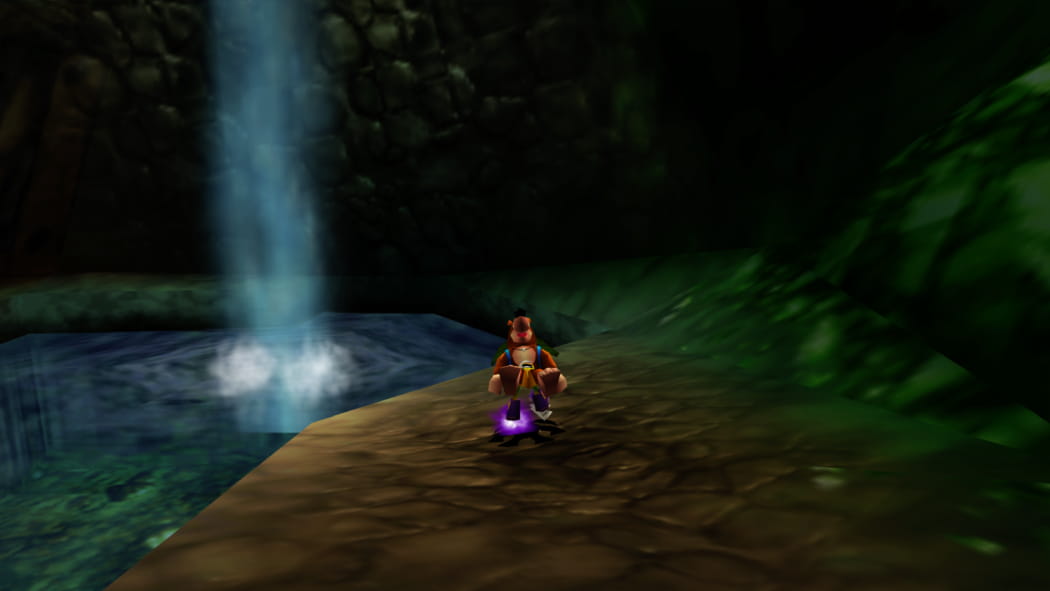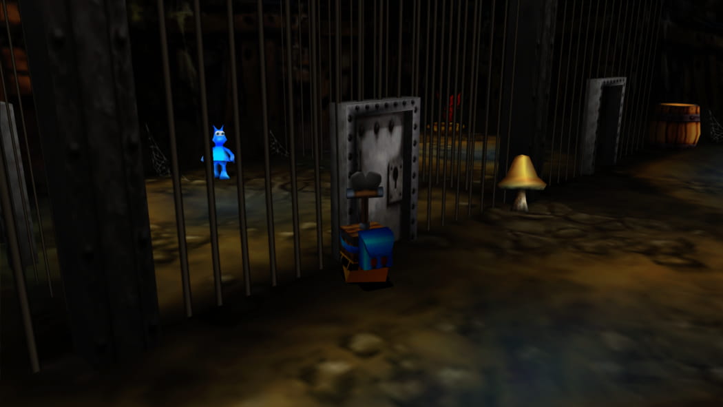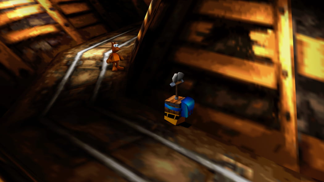 Legt den 2. Mineneingang bei Mumbos Schädel als Banjo und Kazooie und der Bohr-Birne frei. Betretet dann als Detonator die Höhle und zündet das explosive Fass an, sodass ein Weg zum Jinjo frei wird.