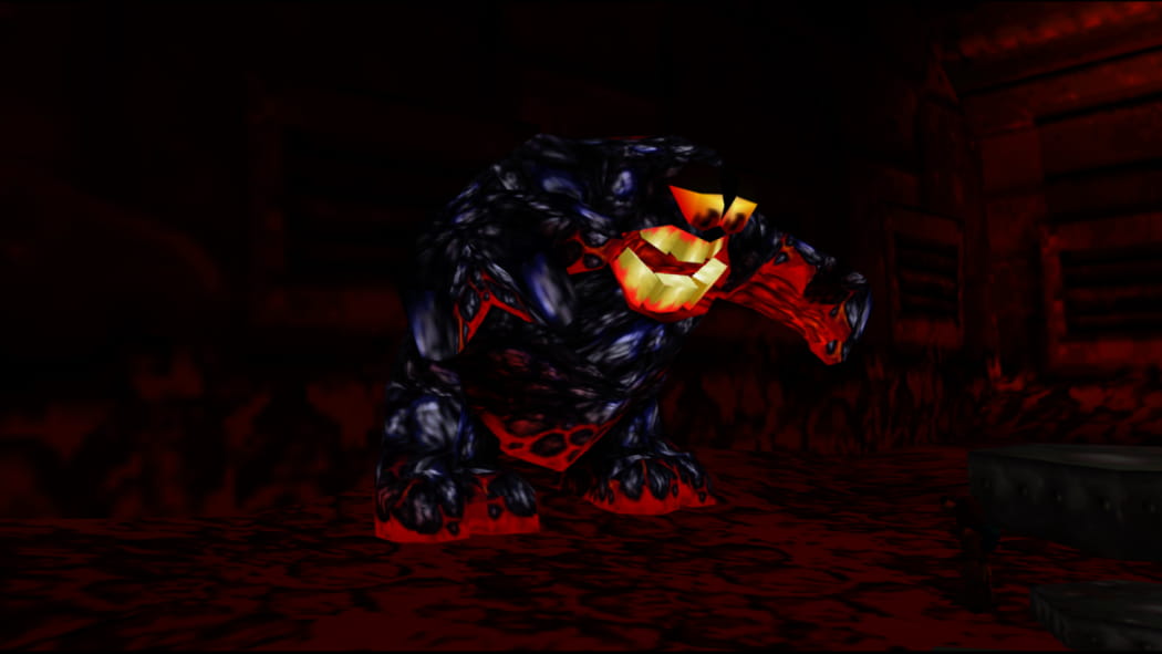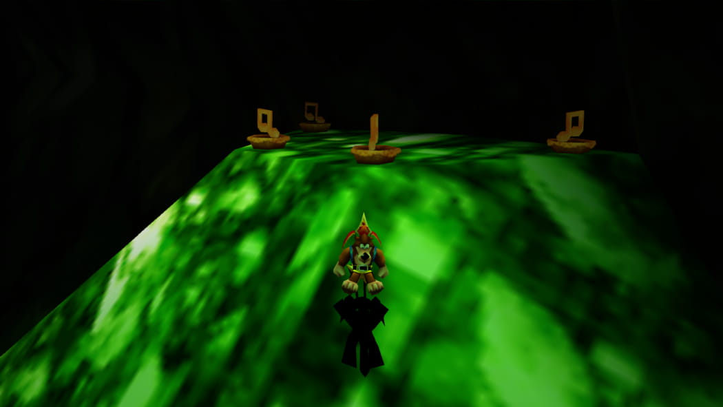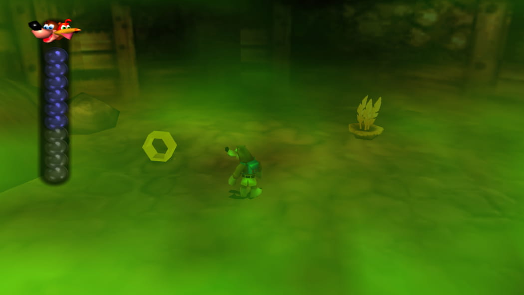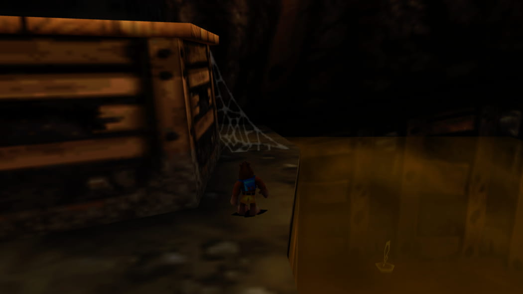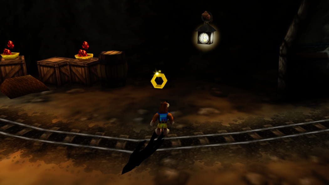 Im Keller der Schaltzentrale. Ihr findet die Schaltzentrale durch den 2. Mineneingang nahe Mumbos Schädel. Entweder ertastet ihr euch den Weg mittels Feuer-Eiern, oder verwendet die Trennplatten vor dem Gebäude, damit Banjo den Lichtschalter im Obergeschoss aktiviert lassen kann.