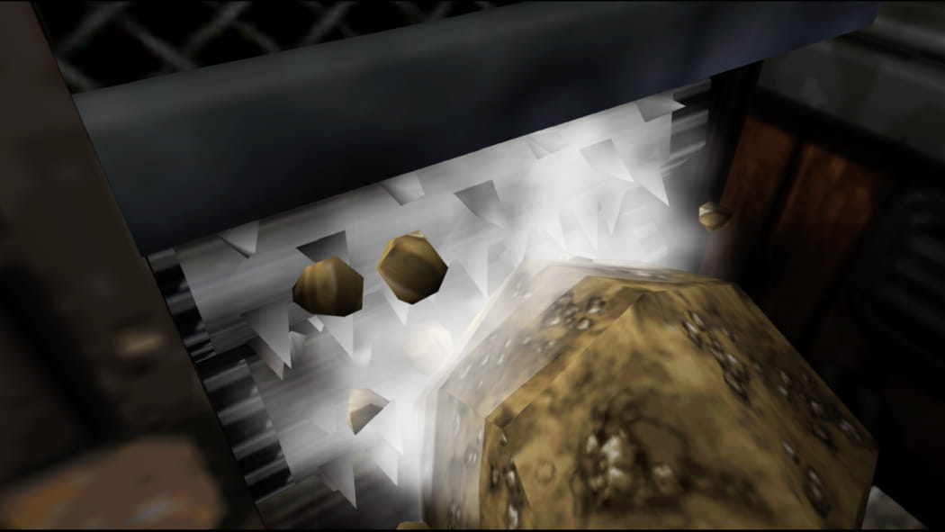 Begebt euch in das Innere des Schredder-Schuppens und aktiviert als Banjo und Kazooie den Schalter für das Fließband. Mit Mumbo bringt ihr den großen Felsen vor dem Gebäude auf das Fließband. Nach dem Schredder-Vorgang sammelt ihr noch die drei Einzelstücke des Puzzlos auf.