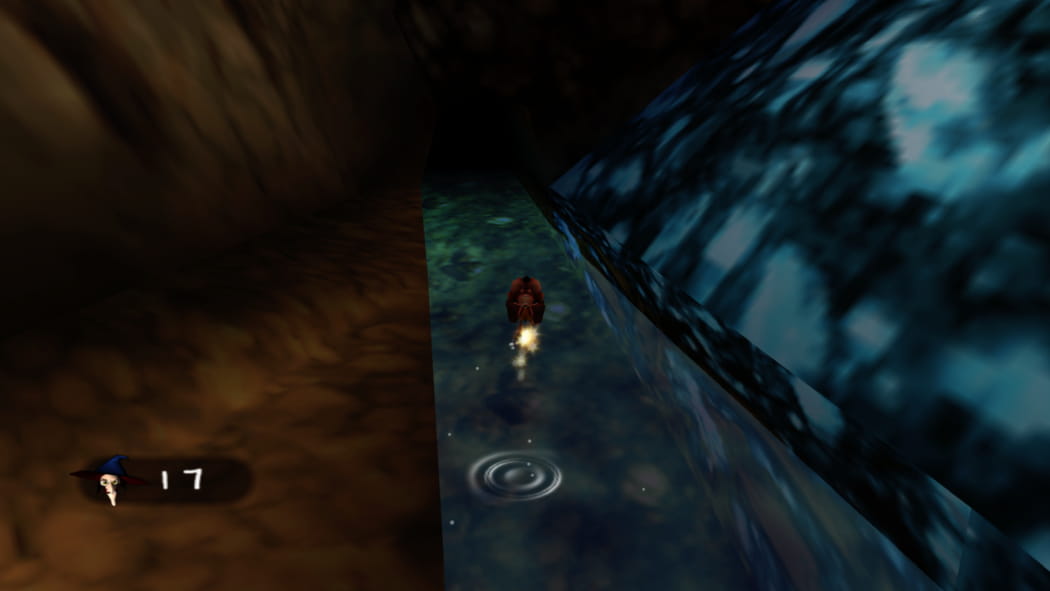 Am Levelzugang beherbergt eine Kiste ein Paar Turnschuhe. Zieht sie an und begebt euch zum Bodenschalter für ein Gitter am Ende des Wasserweges. Aktiviert den Schalter und folgt dem Wasserweg zum Puzzlo.