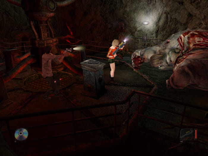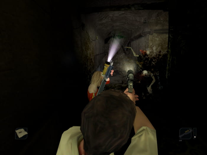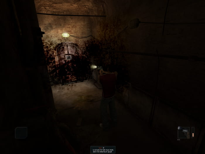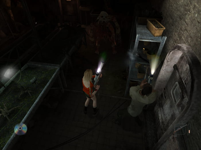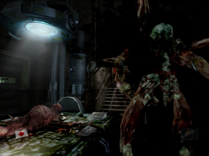 Ihr findet euch im Heizungsraum wieder. Neben Pistolenmunition werdet ihr auch eine CD finden. Verlasst den Raum und lauft durch den kommenden Gang. Ihr werdet auf zwei Mutanten stoßen und in einer Ecke einen Energy Drink finden. Im nächsten Gang lauft ihr entgegen der Kamera nach hinten zu einer Tür, welche in einen anderen Gang führt. Dort geht ihr in Richtung Kamera vorbei an einem harmlosen Mutanten (nicht anleuchten!) und findet Munition für die Schrotflinte. Kehrt in den vorherigen Gang zurück und lauft dieses mal in Richtung Kamera und biegt bei der nächsten Gelegenheit ab. Hinter einer Tür findet ihr zwei verschiebbare Käfige. Unter einem der Käfige findet ihr eine Schrotflinte. Hinter dem anderen Käfig findet ihr einen Hebel. Habt ihr diesen aufgehoben, erscheint ein starker Mutant, welchen ihr platt machen solltet. In seinem Käfig findet ihr eine Lichtgranate.