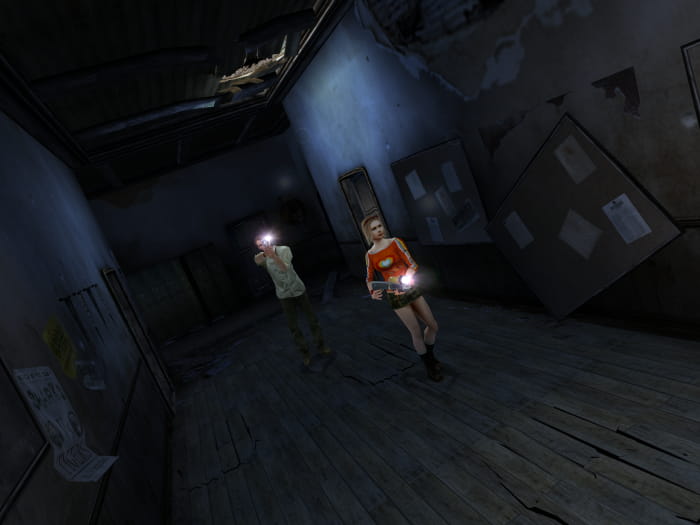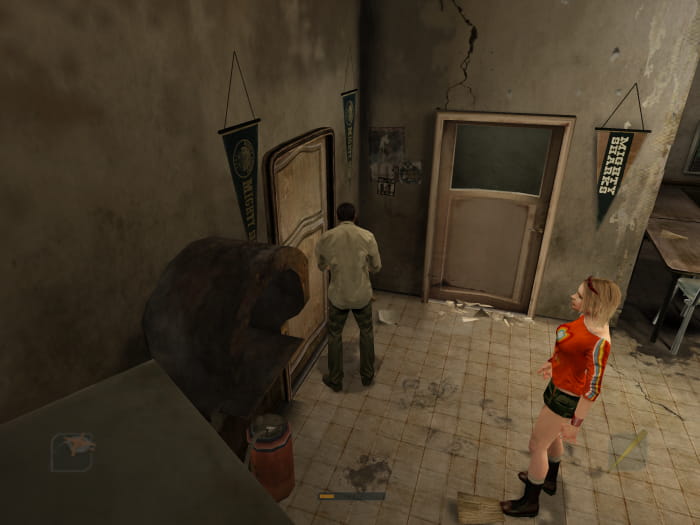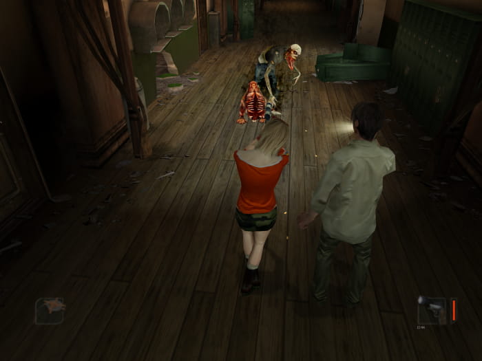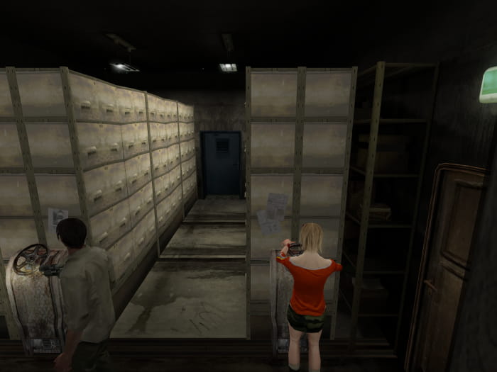 Im geheimen Raum findet ihr einen schweren Safe. Einen Charakter lasst ihr diesen schleppen, während ihr mit dem anderen Charakter ins Zimmer zuvor lauft. Anschließend geht ihr nach links bis zur hintersten Tür. Ihr kommt in einen Raum, in welchem ihr den Safe einen Schacht hinabwerfen könnt. Sammelt noch die CD auf und warpt euch mittels eurer Karte zum Treffpunkt auf den Schulhof zurück. Lauft dann erneut zum Wohnheim, betretet das Gebäude und geht in das Zimmer auf der rechten Seite. Nehmt die neu erschienene Munition vom Tisch und erledigt das übergewichtete Etwas, um so an den Schlüssel für Friedmans geheimes Büro zu gelangen, welcher sich im Safe befand und in der Bibliothek seine Verwendung hat.