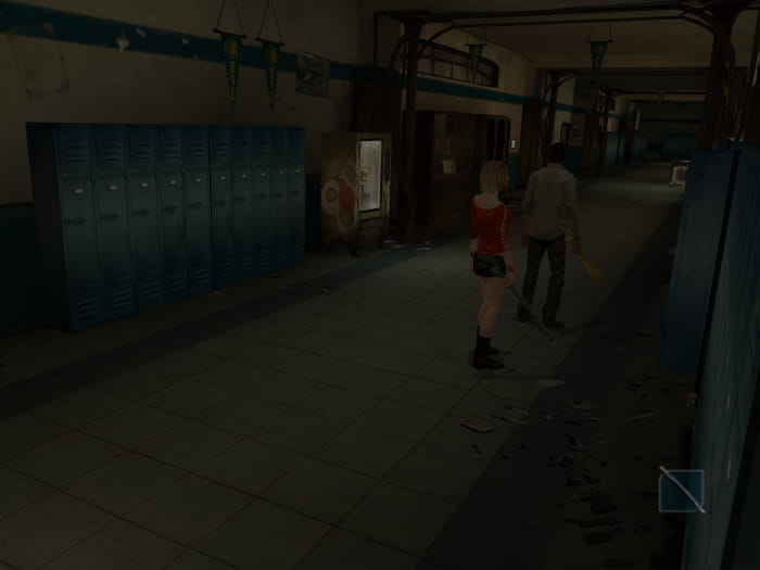 Nach einer Cutscene findet ihr euch mit Josh, Ashley und Shannon in einem Pausenraum wieder. Wählt die beiden Charaktere eurer Wahl, schnappt euch den Baseballschläger (Special Mode: Morgenstern) und zerschlagt das Glas einer Tür, um im Raum dahinter einen Draht zu finden, mit welchem ihr das Schloss zum Verlassen des Pausensraums knacken könnt. Im Pausenraum könnt ihr noch im Getränkeautomaten einen Energy Drink und auf dem Tisch eine CD zum Speichern finden. Begebt euch anschließend die Treppe hinauf in das 1. Obergeschoss, wo ihr erneut das Glas einer Tür einschlagen könnt, um einen Raum zu betreten. In diesem schiebt ihr ein Bücherregal zur Seite und findet so einen Schraubendreher.