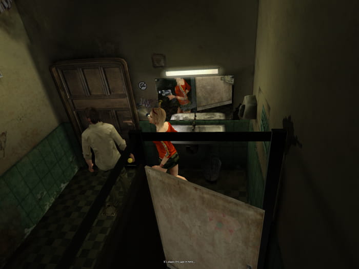 Kehrt ihr zurück in den Gang, wird sehr wahrscheinlich ein weiterer Mutant erschienen sein und euch angreifen. Macht ihn nass und betretet das Herren-WC um dort, sofern ihr einen Partner mit euch führt, den Ventilationsschacht mit dem Schraubendreher zu öffnen. Auf diese Weise findet ihr einen Energy Drink (oder Pistolenmunition auf einfacheren Schwierigkeitsgraden). Die Damen-Toilette beherbergt einen Energy Drink in der Kabine ganz rechts. Zu guter letzt betretet ihr die Bibliothek, in welcher ihr eine CD und Friedman antrefft.