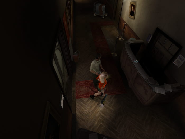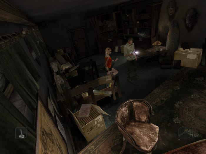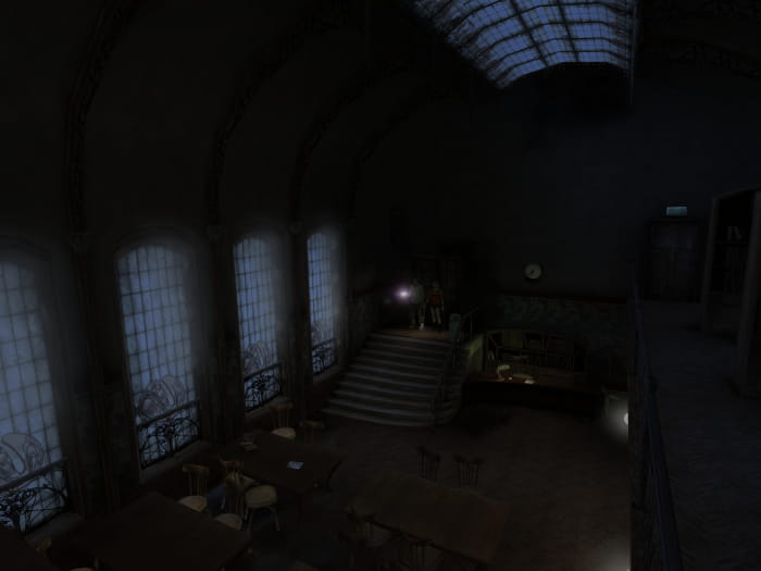 Begebt euch als nächstes in die Bibliothek zurück in den Raum, in welchem ihr Friedman das erste mal getroffen habt. Sein geheimes Büro lässt sich mit dem neuen Schlüssel öffnen. Darin findet ihr die Statue #2, eine starke Taschenlampe, das Filmband 24 und einen Schlüssel. Geht ihr in den Eingangsflur des Bibliotheksgebäudes, wird euch Mr. Walden beklauen und die Tür nach draußen hinter sich abschließen. So ein Penner. Allerdings habt ihr nun die Möglichkeit die Doppeltür zum Treppenhaus zu öffnen.