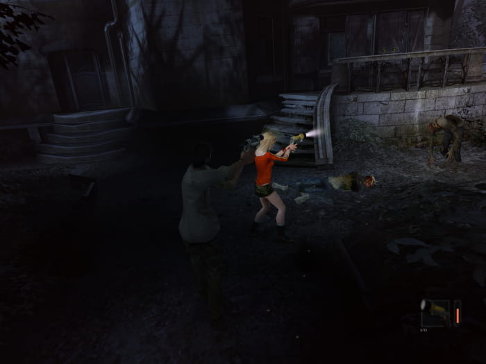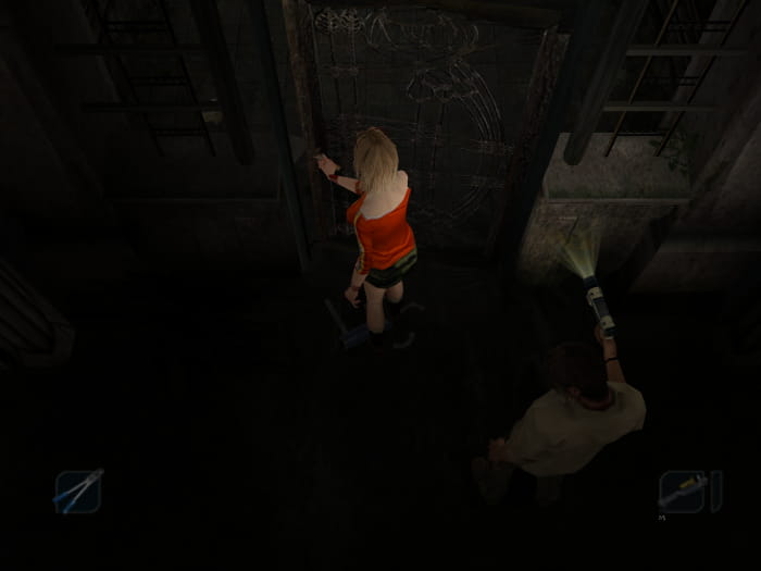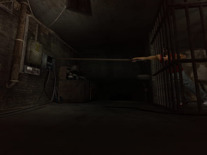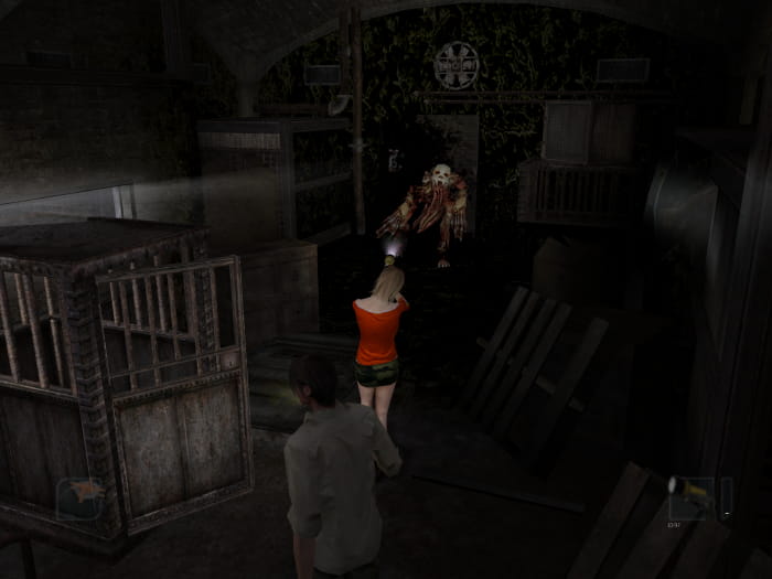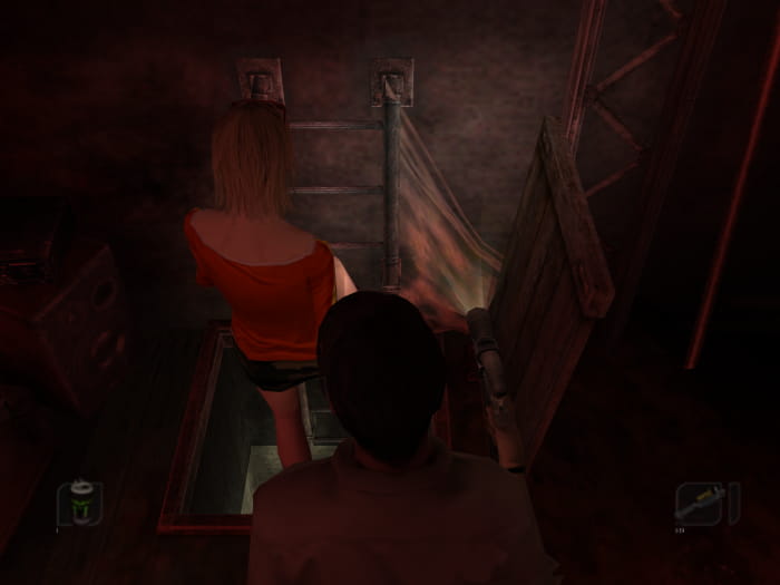 Folgt dem Gang bis zum Ende. Leuchtet mit der Taschenlampe den Mist vor der Tür weg und tretet in den nächsten Raum. Da gibt es zwei Türen, von welchen eine verschlossen ist. Gegenüber dieser führt ein Weg zu einer offenen Tür. Hinter dieser findet ihr euch in einem Raum mit einem Schrank wieder. Die Tür zu eurer Rechten bringt euch zu Dan, welcher weinerlich in der Ecke hockt. Zusammen mit ihm begebt ihr euch zurück zur Leiter, mit welcher ihr in den Keller gekommen seid. Unterwegs werden euch Monster angreifen und die Tür zum Eingangstunnel wird blockiert sein. Schiebt den Käfig, welcher jene Tür blockiert, ein Stück weit weg, sodass ihr die Tür öffnen könnt. Anschließend schafft ihr es entweder erfolgreich zur Leiter oder werdet auf dem Weg dorthin, genauso wie Dan, besiegt. Das Ergebnis ist dabei für den späteren Verlauf des Spiels egal.