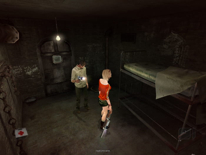 Lasst dem Basketball seine Ruhe und begebt euch in die Umkleidekabine, um dort den Anruf von Ashley entgegenzunehmen. Anschließend verlasst ihr die Sporthalle und verfolgt wer auch immer eure Tasche geklaut hat. Draußen geht ihr durch eine naheliegende Tür in den Hintergarten der Schule. Lauft nach rechts um in einen Keller zu gelangen. Bevor ihr die Leiter hinabklettert schnappt ihr euch das Klebeband und die Taschenlampe, welche auf dem Tisch liegen. Klebt die Taschenlampe auf die Pistole und begebt euch die Leiter hinunter.